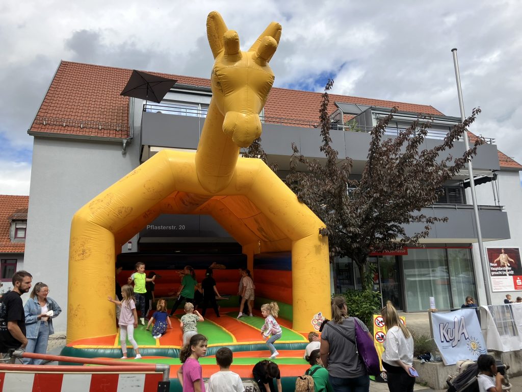 Was für ein großartiger Tag! Beim diesjährigen Erdmannhäuser Straßenfest war KuJA e.V. mit der beliebten Giraffen-Hüpfburg vor Ort – und sie war wie immer ein echter Magnet für kleine und große Besucher. Lachen, Hüpfen, Toben – die Stimmung war einfach wunderbar!